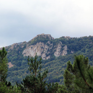 Photo de gauche: Le Roc Nègre, au centre: Le Roc Blanc et à droite: Le Pic Bugarach. Le Roc Nègre renfermerait dans sa montagne une salle circulaire souterraine mais aussi une mine d'Or .... , le Roc Blanc accueillerait lui le Tombeau de Jésus et de Marie Madeleine, et le Mont Bugarach une base OVNI ou une entrée vers l'Intra Terre ... rien que ça ;) Ce qui est sûr et qui est également particulier avec le Mont Bugarach, c'est que les roches du sommet sont plus anciennes que les roches d'en dessous. Il y a des roches qui sont remontées, comme une inversion .... on rappelle aussi les anomalies magnétiques relevées autour du Mont et surveillées par les militaires à une époque.